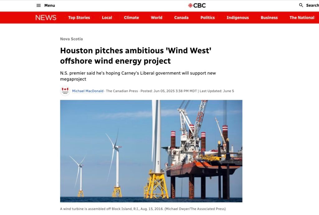 “Premier Tim Houston of Nova Scotia has really been leading the charge on this idea of Wind West. It’s a really ambitious initiative to get offshore wind electricity to other provinces across Canada,” says Obermann.