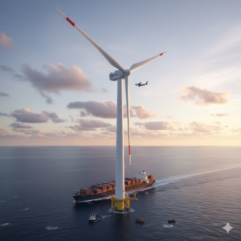The 15-megawatt turbines are also very large. I’ve stood beside onshore turbines, and their scale is hard to comprehend, even when you are standing beside one. Try to picture a blade that’s 100 meters long with a sweep of 200 meters, the length of two football fields.