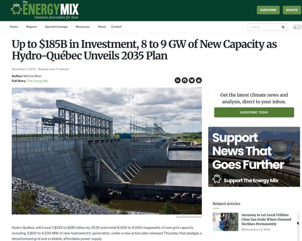 Hydro Quebec is set to invest between $155 and $185 billion over the next decade to add 11,000 megawatts of new clean energy to their grid.
