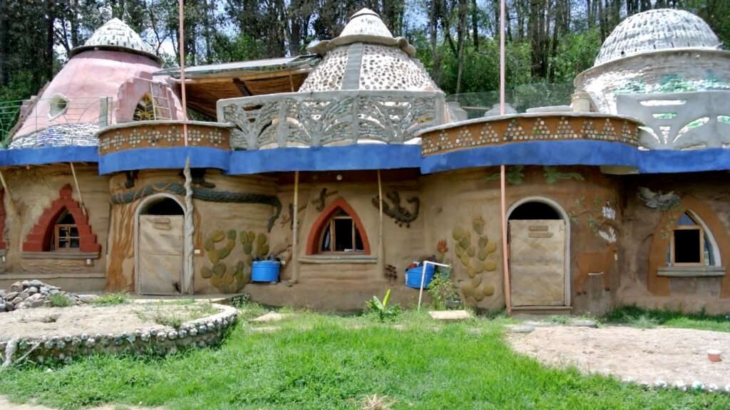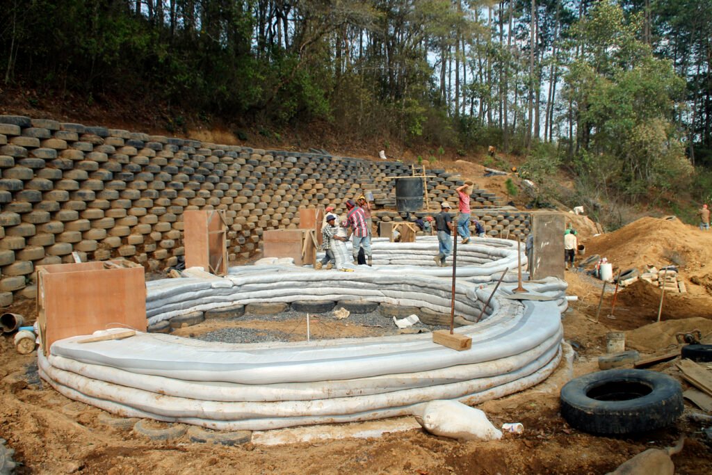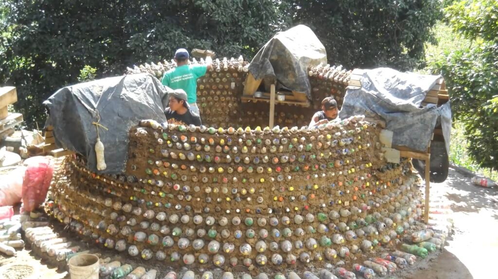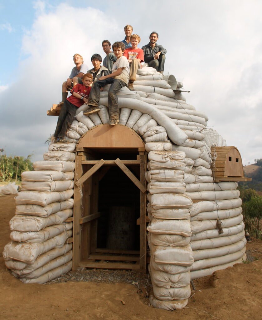 Building Earthship-inspired buildings out of trash is quite labour-intensive, which also helped the community.