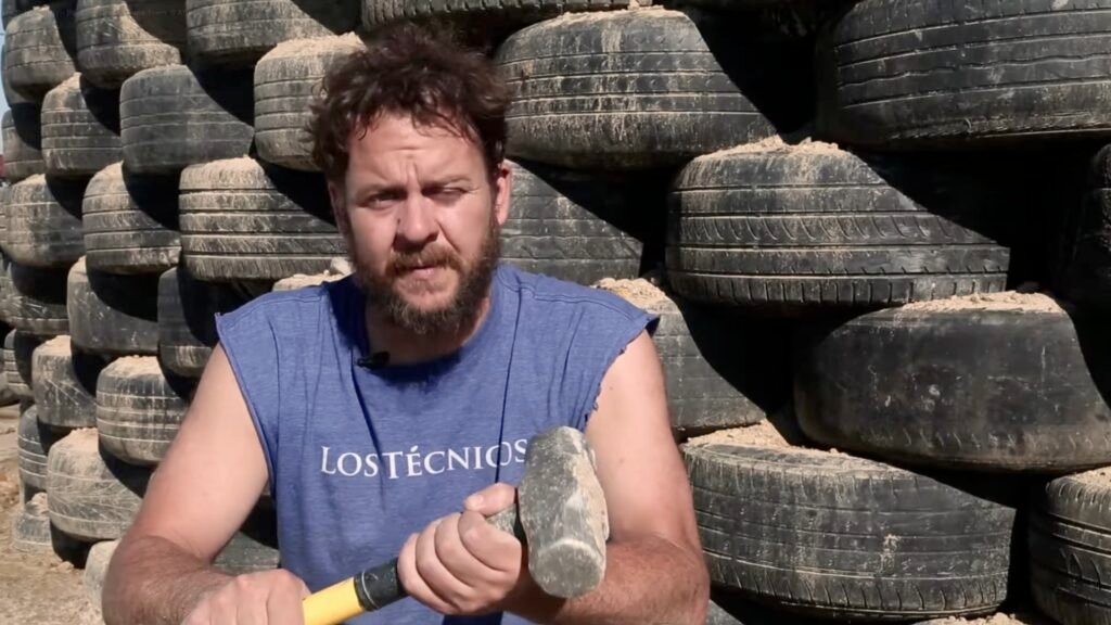 “We threw the tires in a row on the outside of the platform and then started tossing dirt into the tires and started using sledgehammers to pound those tires out. And after probably five, six months, we had our first set of buildings,” says Matthew.